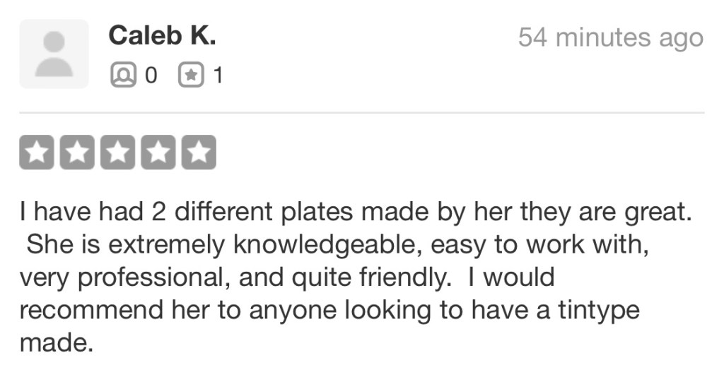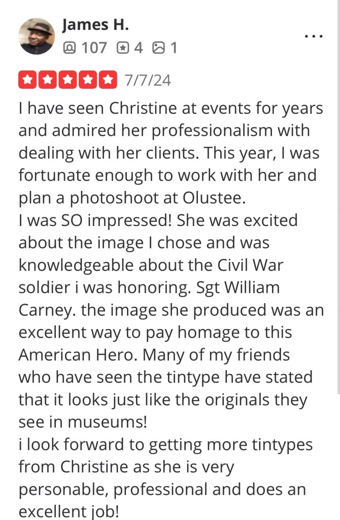 Photographic Artist based in Charleston, South Carolina making authentic handmade tintype portraits using the wetplate collodion process invented in 1851